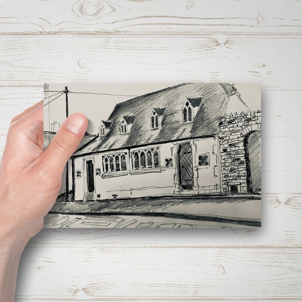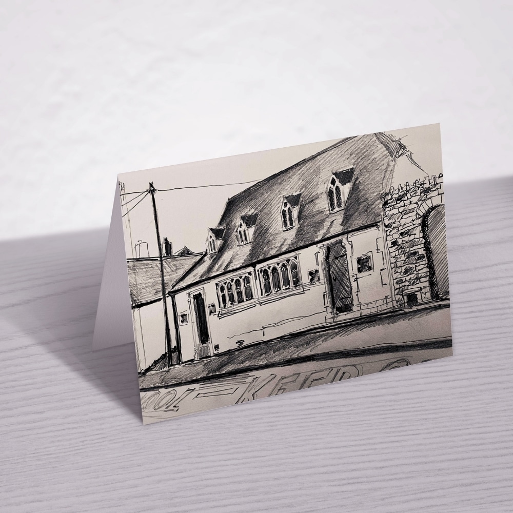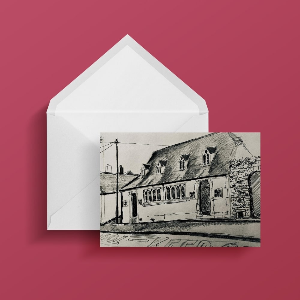 Celebrate community and local heritage with our 5×7 inch greeting card, Rode Methodist First School. This finely detailed hand-drawn illustration captures the charm and character of this much-loved Somerset school, a place filled with history and fond memories.
